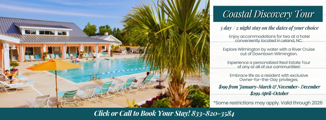 Throughout the weekend, you’ll enjoy a private, guided real estate tour led by one of our knowledgeable Community Experts, meet our team of award-winning builders, and explore their beautifully designed model homes. Experience life as a resident with an exclusive Owner-for-the-Day Pass, granting you access to our resort-style amenities. Take part in a cherished community tradition and enjoy our annual Cardboard Boat Regatta, where neighbors dress up to race across Hammock Lake in vessels of their own creation. You’ll also have time to discover the best of coastal North Carolina, relax on nearby beaches, stroll through Downtown Wilmington, and explore everything Leland and the surrounding area have to offer.